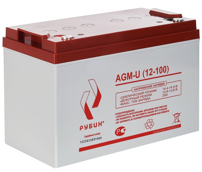 Аккумуляторная батарея 12V 100Ah AGM (30.5kg) РУБИН РЭ-АКБ12100 — данная модель идеально подходит для использования в ИБП и системах резервного питания. В буферном режиме способен сохранять свои характеристики до десяти лет. Изготовленный из прочного ABS пластика, корпус гарантирует повышенную взрыво- и огнестойкость.