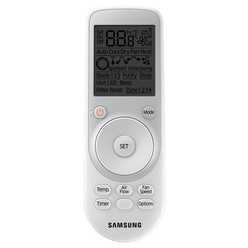 Samsung (Самсунг) AR-KH00E представляет собой беспроводной пульт управления, совместимый для совместной работы с внутренними блоками кассетного типа сплит-систем серии 360. Пульт предоставляет возможность регулировать все параметры функционирования кондиционера, в том числе и изменять направление подачи кондиционированного воздуха блоком.