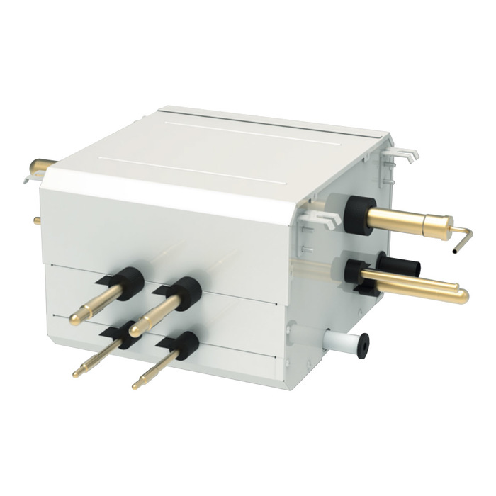 Распределительный блок Gree (Гри) NCHS2D помогает соединить между собой не только стандартные внутренние и наружные блоки, но так же подключить группу гидромодулей к наружному блоку, позволяя использовать наружный блок в качестве теплового насоса.