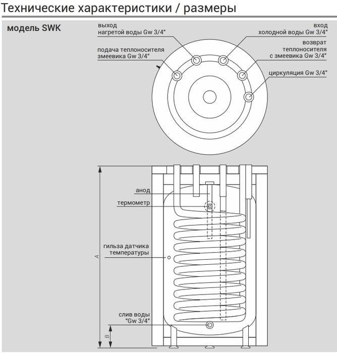 SWK Termo Top – это модельный ряд бойлеров косвенного нагрева, представленный польской компанией Kospel. Водонагреватели данной серии оборудованы спиральным змеевиком, благодаря увеличенной площади которого вода нагревается гораздо быстрее. Эффективная теплоизоляция внутреннего бака позволяет нагретой воде максимально долго сохранять высокую температуру.