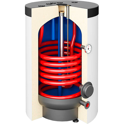Водонагреватель с увеличенным объемом спирального теплообменника Galmet (Гальмет) RONDO PREMIUM 120 — это накопительная емкость цилиндрической формы (бак), теплоизолированная от окружающей среды пенополиуретаном или полистиролом с установленным внутри теплообменником. Роль теплообменника играет змеевик сложной формы. По нему циркулирует теплоноситель контура отопления котла, прогревая весь объем воды, находящийся в баке. Внутри емкости устанавливается массивный магниевый анод, обеспечивающий защиту элементов устройства от гальванической коррозии.