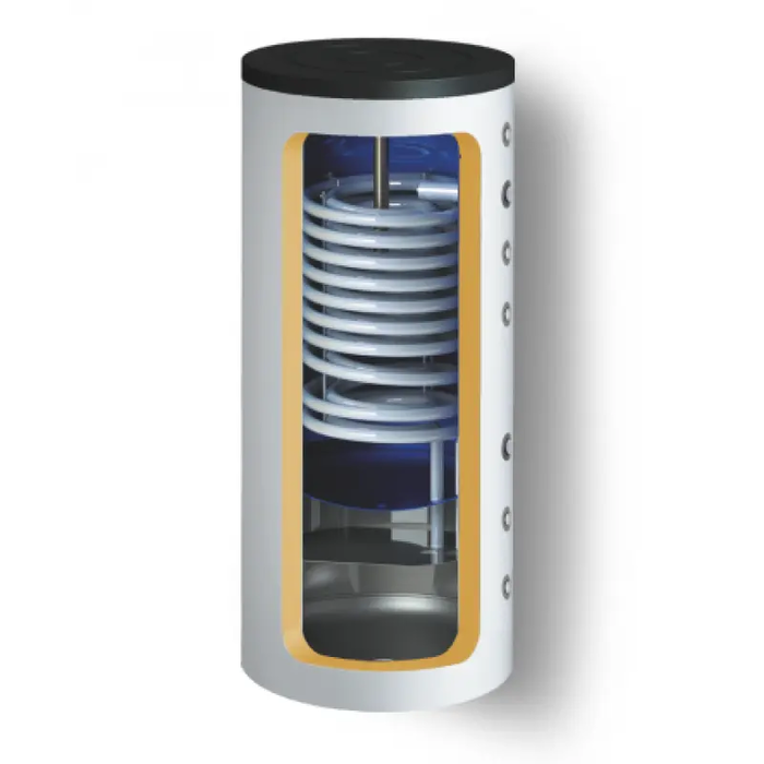 Бойлеры крсвенного нагрева Kospel серии SWVPC оснащен теплообменником с большой площадью поверхности и и двумя резервуарами для воды. Данная конструкция идеально подходит для совместной работы с тепловыми насосами. Оборудование защищено от коррозии и расчитано на длительный срок эксплуатации. При необходимости можно установить ТЭН, требуемой мощности.