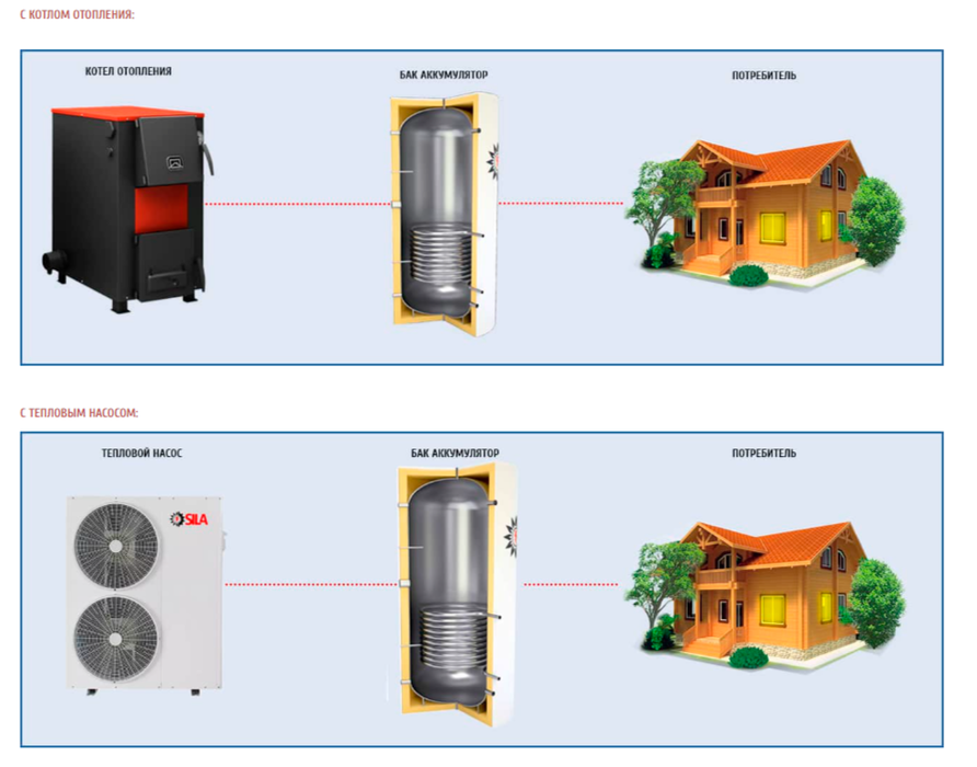 - Могут использоваться в качестве буферной емкости в системе отопления и для приготовления горячей воды.