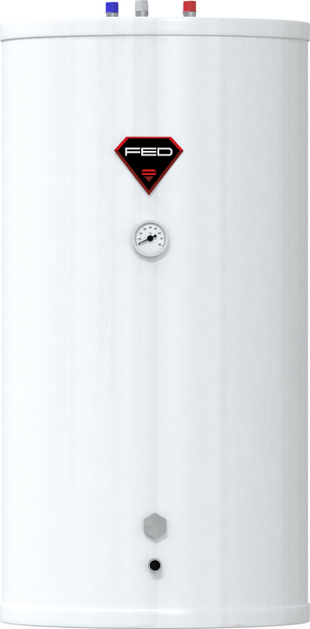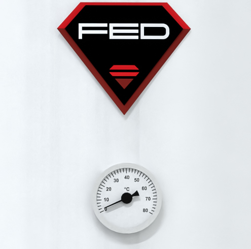 Напольный бойлер косвенного нагрева Federica Bugatti (Федерика Бугатти) FED STEEL COIL 150 белый оснащен термометром на передней стороне для точного контроля за температурой. При изготовлении бака используется качественная сталь с эмалированным покрытием, которое не разрушается под воздействие температур и их перепадов.