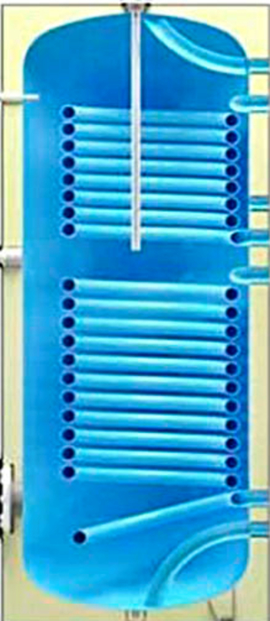 Бойлер косвенного нагрева Federica Bugatti (Федерика Бугатти) KBD 1000 V3 2 змеевика используется в различных сферах хозяйства для приготовления большого объема горячей воды. Устройство может подключаться как к напольным, так и настенным котлам отопления. Верхний змеевик нагревает воду от котла, нижний использует нагрев с помощью гелиосистемы.