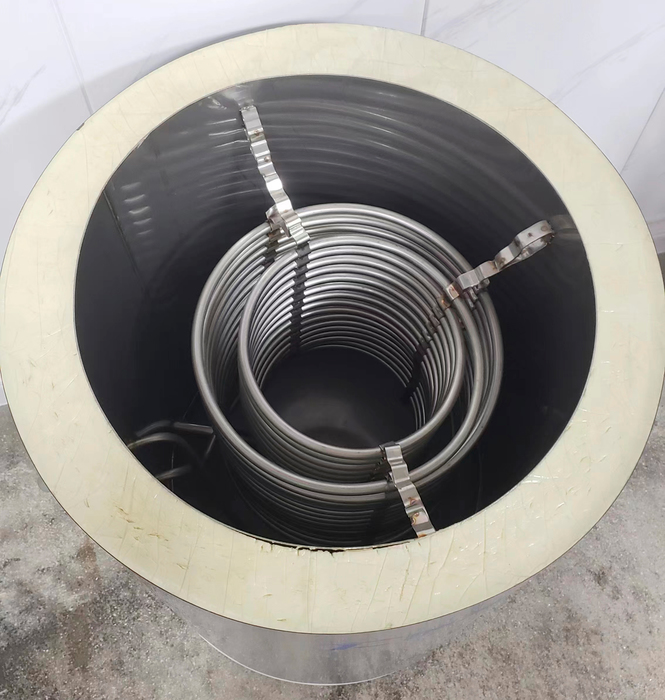 Материал теплообменника: гладкая нержавеющая сталь марки SUS 316. Данный тип стали обычно используется при изготовлении сложных компонентов с предполагаемой переменной или постоянной тепловой нагрузкой — теплообменники разной степени сложности (спиралевидные, пластинчатые, реберного типа), а также стальные трубы и прочие подобные изделия.