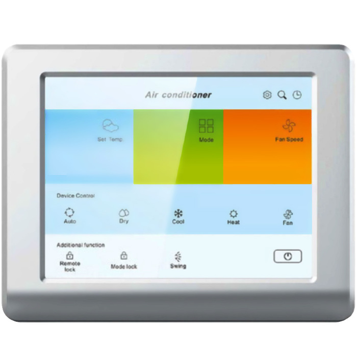 Центральный контроллер с сенсорным дисплеем KORF (КОРФ) KF-CRC-TS СС используется для централизованного управления внутренними блоками, входящими в мультизональную систему VRF. Полностью отслеживается состояние внутренних блоков по всем параметрам. касающимся работы узлов, двигателей, компрессоров, вентиляторов, передвижением хладагента, устанавливаемыми режимами. При возникновении нештатных ситуаций срабатывают системы защиты, выдаются коды ошибок, расположение блока, в котором возникли неполадки или есть нештатные отклонения в работе.