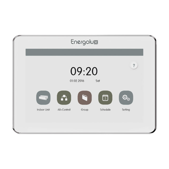 Аксессуар ENERGOLUX (Энерголюкс) SCC54G1 — это центральный пульт управления с сенсорным дисплеем (4,3″) с выходом на 32 внутренних блока и 16 систем. Пульт устанавливается в служебном помещении и подсоединяется к оборудованию проводом, предназначенным для передачи данных между объектами.