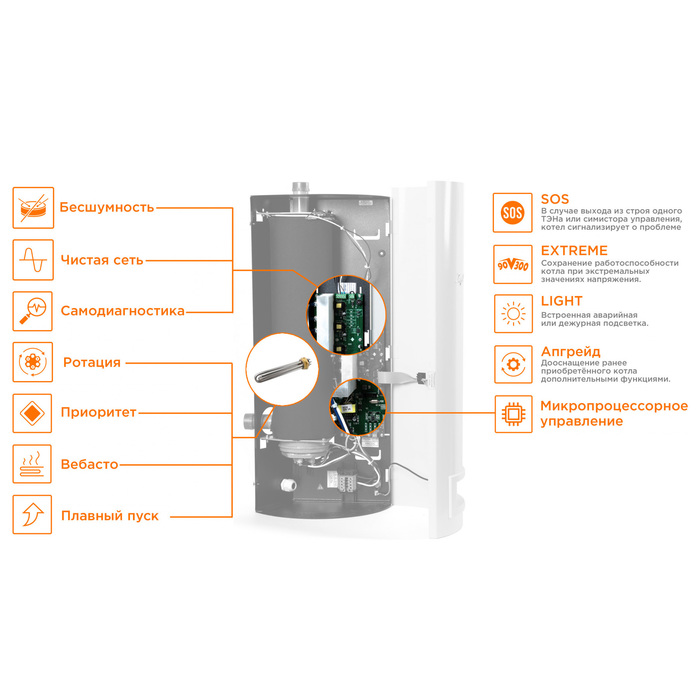 - Стабильная работа при экстремальных значениях напряжения в электросети