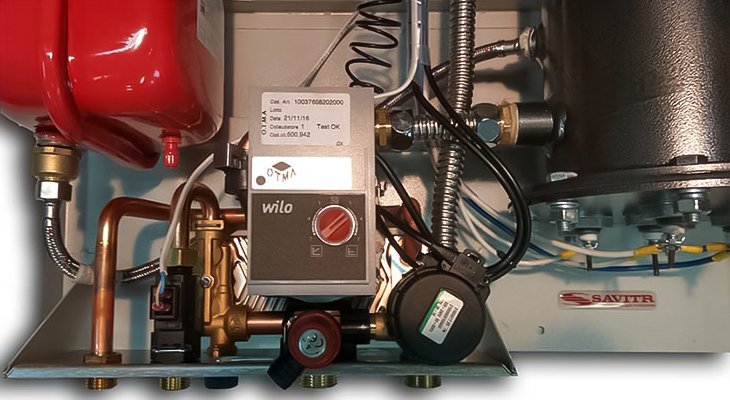 - Автоматический воздухоотводчик, предохранительный клапан, датчик протока, защитное управление от перегрева, манометр