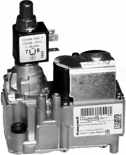 Запасное устройство Protherm (Протерм) клапан газовый (20025241) для газовых котлов 80 KLO-R 10/11, 50 STO-R 10, 50 SOO 10, 24 BOVR 17, 24 KTV, 20, 30, 40 KLOS 11/12. Изделие обеспечивает регулировку давления газа перед его подачей в камеру сгорания. Оптимальное значение данного показателя гарантирует безопасную работу котла.