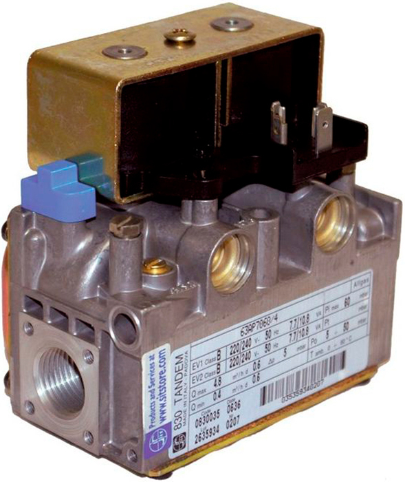 Газовый клапан Protherm (Протерм) SIT 830 для котлов Медведь. Комбинированное устройство работает с автоматическим розжигом и системой ионизации пламени. Алюминиевый корпус соединяет все основные детали запчасти. В конструкции предусмотрены два автоматических отсечных клапана и регулятор давления с сервоприводом.