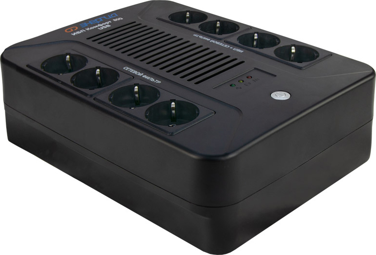 ИБП Энергия Комфорт 800 USB выполнен в форм-факторе напольной розетки для максимально простого подключения устройств. Помимо основных розеток, устройство оснащено разъемами RJ-45, которые позволяют соединить модемы, роутеры и прочие сетевые устройства. Также есть возможность установить мониторинговый узел.