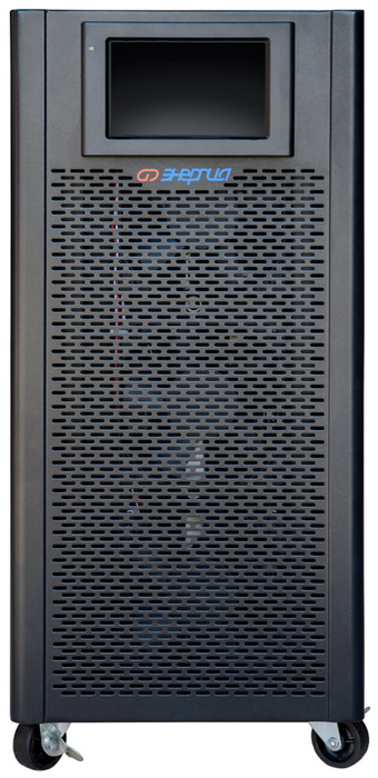 Энергия Прайм-33-40K-2×40 – это источник бесперебойного питания, заключенный в металлический корпус с колесным основанием и регулировочными ножками. Черная расцветка делает прибор незаметным в обстановке любого помещения. Данные о работе устройства выводятся на светодиодный дисплей с подсветкой.