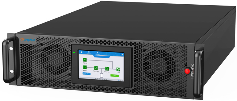 Энергия Прайм-33-60K-0-RT представляет собой источник бесперебойного питания в металлическом корпусе на колесиках. На передней панели расположен LED-дисплей, на который выводятся данные о входном и выходном напряжении и других параметрах работы устройства. Время переключения на АКБ нулевое.