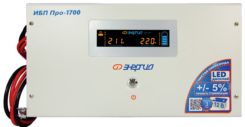 Энергия Про-1700 — это блок бесперебойного питания, который можно устанавливать на стену или на пол. Прочный корпус защищает внутренние детали от любых негативных воздействий окружающей среды. ИБП может работать в непрерывном режиме, принцип действия стабилизатора в нем – автотрансформаторный релейный.