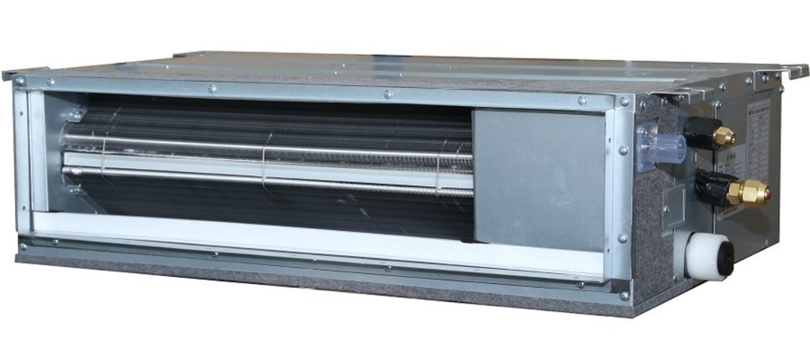 Комплект VRF системы канального типа TICA (ТИКА) TIMS080CHR/TMDN080AE оснащается внутренним блоком, который устанавливается в обслуживаемом помещении и предназначен для скрытого монтажа, например, за подвесным потолком или за фальшстеной. Комплект включает также универсальную модель наружного блока.