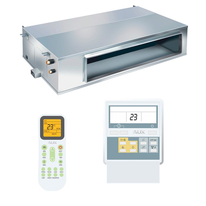 Канальный кондиционер AUX (Аукс) AL-H24/4R1(U)/ALMD-H24/4R1. Площадь кондиционирования 70 кв.м. Качественный кондиционер, который может обогреть помещение, охладить, осушить воздух. Управляется просто, при помощи пульта управления. Установить можно так, чтобы воздух поступал сразу в несколько помещений. Внутренний блок устанавливается в любом месте помещения по желанию заказчика, что позволяет конструкция кондиционера.
