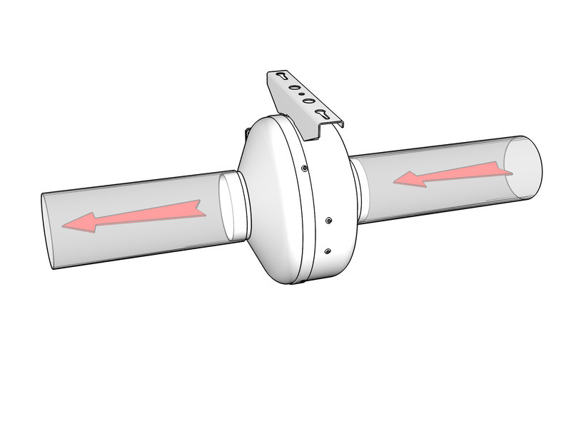- Вентилятор предназначен для канального монтажа с воздуховодами соответствующего диаметра в любой точке вентиляционной системы и под любым углом