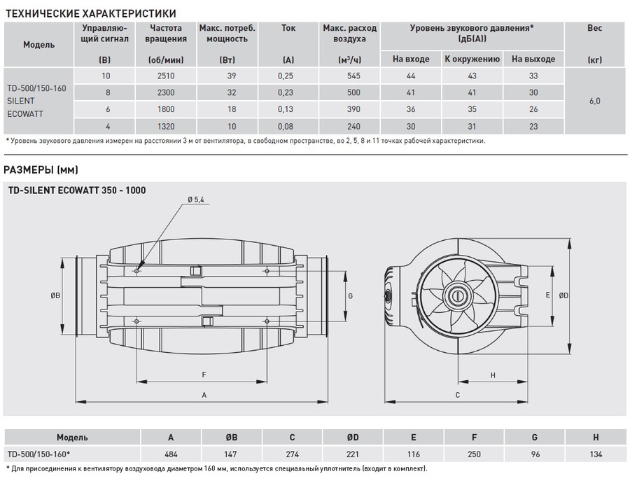 Канальный вентилятор Soler & Palau (Солер & Палау) TD500/150-160 SILENT ECOWATT