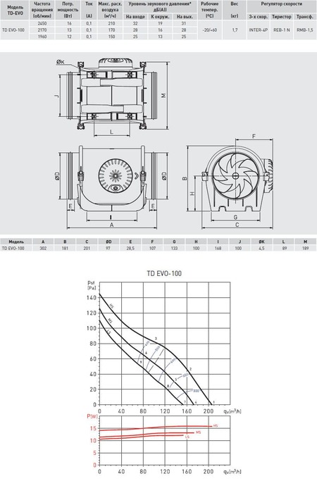 Канальные вентиляторы с диагональными лопатками Soler & Palau серии TD EVO могут оснащаться односкоростным или трехскоростным электродвигателем. Модели TD-EVO-T и TD-EVO-VAR оснащены таймером. В линейку входят вентиляторы различных размеров с расходом воздуха от 210 до 1840 м3 /ч. Приборы отличаются надежностью и долговечностью.