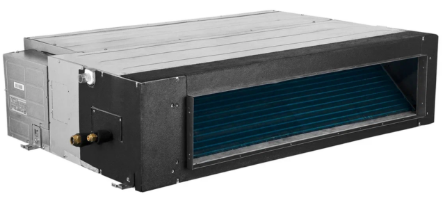 - Средненапорные кондиционеры: Подходят для систем воздуховодов средней протяженности. Для моделей 5,3 и 7,2 кВт свободный набор составляет до 70 Па, для модели 10,5 кВт – 80 Па, а для самых мощных кондиционеров на 14,0 и 16,2 кВт – до 100 Па.