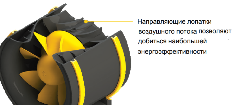 - Повышенный КПД вентилятора гарантирует низкое энергопотребление