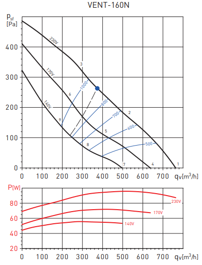 Осевой вентилятор для круглых каналов Soler & Palau (Солер Палау) Vent 160NK N8 потребляет 96 Вт энергии, благодаря своей конструкции и способности работать при низких скоростях вращения. Использование вентилятора для удаления воздуха из вытяжек, барбекю, каминов и химических шкафов не рекомендуется.