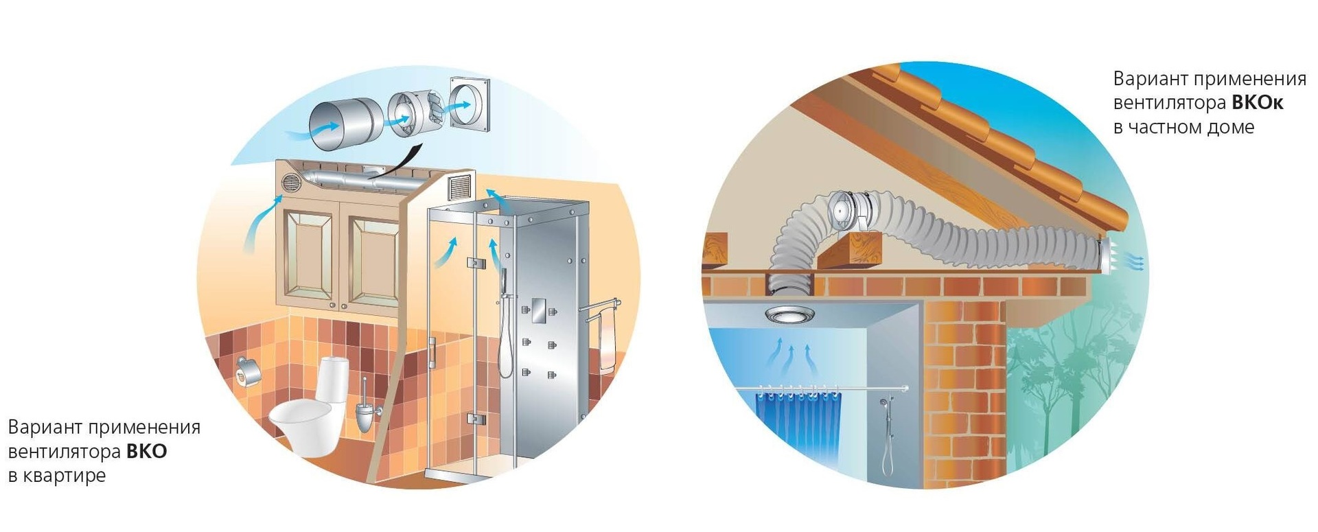 - Постоянная или периодическая вентиляция санузлов, душевых, кухонь и других бытовых помещений.