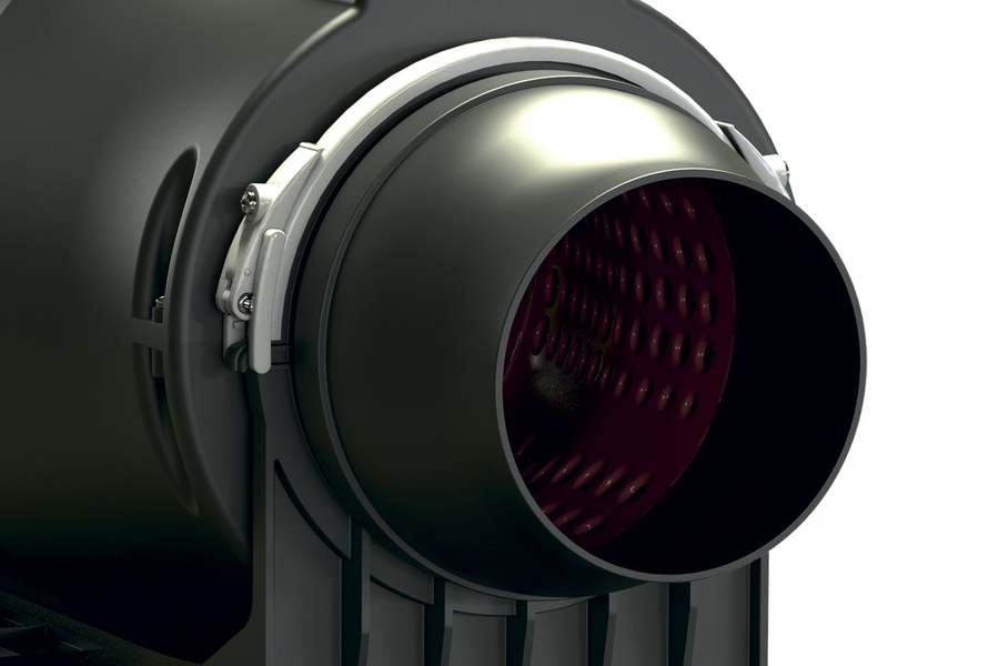 - Конструкцией предусмотрены быстросъемные хомуты, которые позволяют легко без специальных инструментов снимать вентилятор для проверки и технического обслуживания