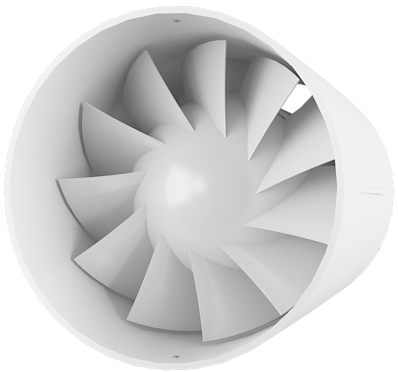 - Выходной патрубок вентилятора оснащен специальными выпрямителями потока воздуха, которые снижают турбулентность, увеличивают напор воздуха и способствуют снижению уровня шума.