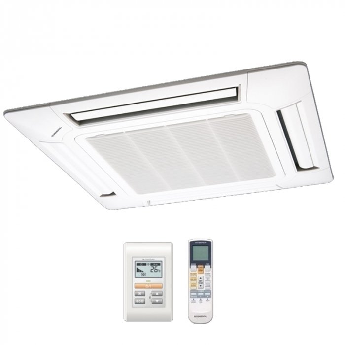 AUXD/AUXA-GALH — внутренние блоки кассетного типа General легко транспортируются и просты в монтаже. Приборы практически полностью скрываются за подвесным потолком после установки. Видимой остается лишь декоративная часть корпуса оборудования, из которой в помещение поступают плавные потоки воздуха. Агрегаты работают практически бесшумно и специального обслуживания не требуют.
