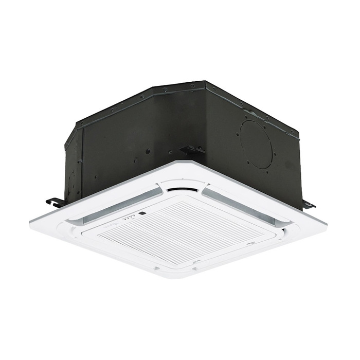 Кассетные внутренние блоки для мультизональной системы компании Kentatsu входят в серию KTZY, что указывает на их компактное и четырехпоточное исполнение. Встраивание в подвесной потолок происходит с учетом толщины блока и размеров ячейки. В декоративной панели, скрывающей блок при установке, находится дисплей, жалюзи и датчик приема ИК сигнала от пульта ДУ.