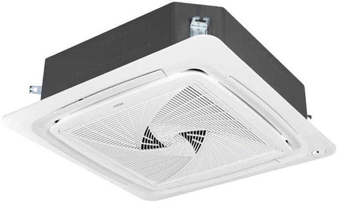 Haier (Хайер) ABH105H1ERG/1U105S2SS2FA – это мощный кассетный кондиционер с четырехпоточным воздухораспределением. В комплект с ним входят и беспроводной пульт управления, и декоративная панель. В наружном блоке установлен инверторный энергоэффективный компрессор, работающий на экологичном фреоне R32.