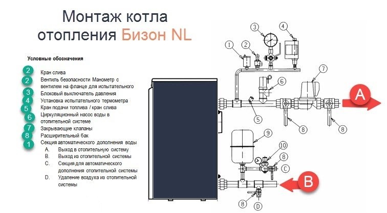 - Имеется возможность подключения дополнительного накопительного бойлера