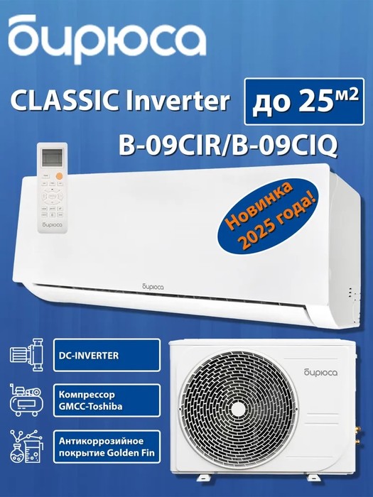 Новая коллекция инверторных кондиционеров Classic Inverter марки Бирюса – это элегантное и практичное решение от известного российского производителя. Устройства линейки обладают лаконичным современным внешним видом, отличаются экономичностью и практически бесшумной работой. Оснащенные инверторными компрессорами, они предлагают широкий спектр полезных возможностей.