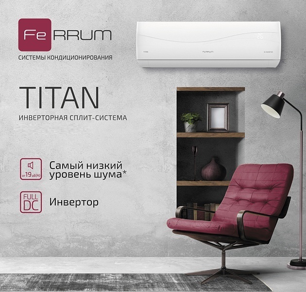 Коллекция настенных кондиционеров TITAN (FULL DC Inverter) LIMITED EDITION торговой марки Ferrum представлена моделями европейского стильного дизайна с матовой лицевой панелью внутренних блоков. Линейка сочетает в себе производительность, надежность и низкое потребление энергии, гарантируя комфорт в любое время года.