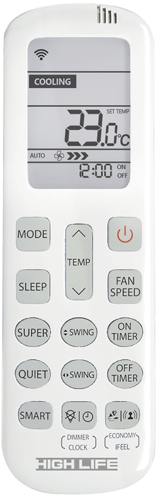High Life (Хай Лайф) PRIORITY CLASS ACHL-07PC-CHDV02 – это современный настенный кондиционер с дисплеем и пультом ДУ. Он работает в двух основных режимах: холод/тепло и имеет дополнительные режимы в виде вентиляции и осушения воздуха. Подходит для небольших помещений, площадь которых не превышает 20-23 м. Работает почти бесшумно.
