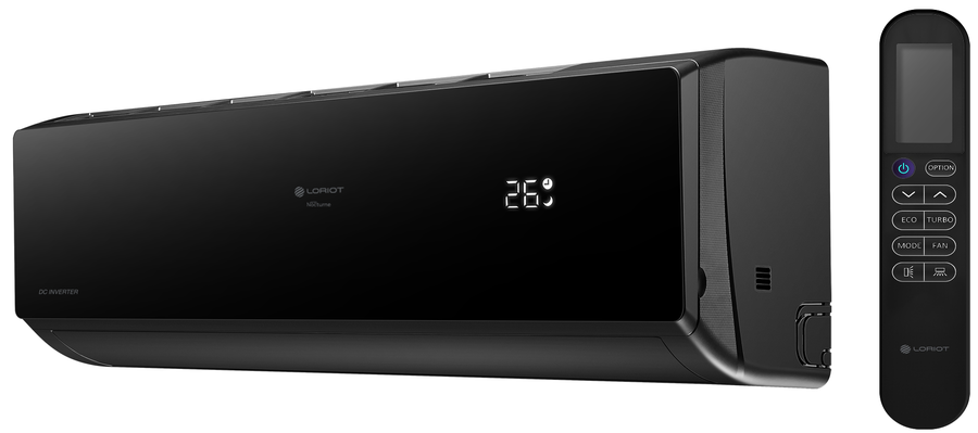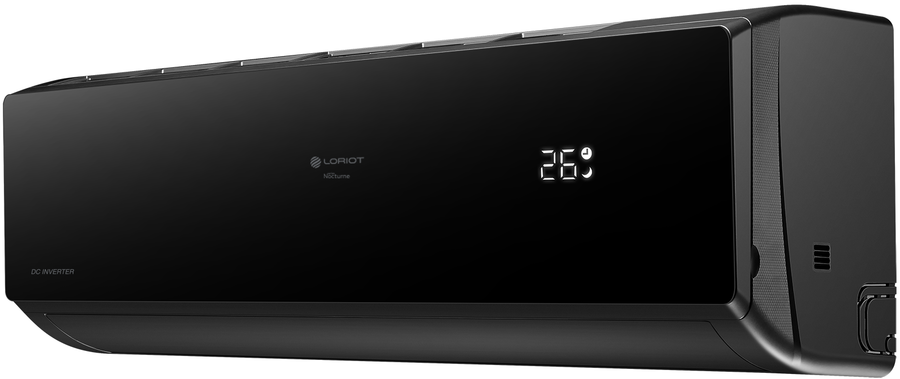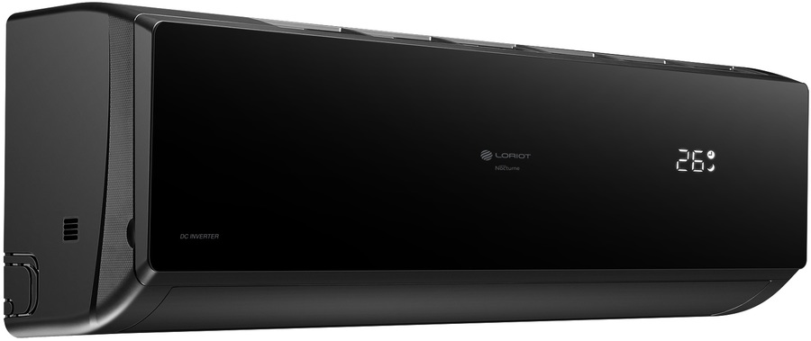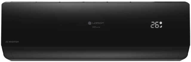 Настенный инверторный кондиционер Loriot (Лориот) Nocturne LAC-24TNI окрашен в черный цвет и идеально гармонирует с любой обстановкой. Его холодопроизводительность составляет 7.03 кВт, чего вполне достаточно для эффективного охлаждения комнат площадью 70 м2. Доступно управление по Wi-Fi и включение кондиционера в систему Умного дома.