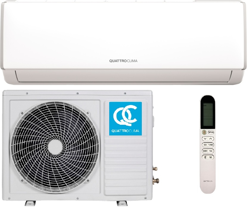 QUATTROCLIMA (Кваттроклима) QVVE24WBE/QNVE24WBE – это мощный и энергоэффективный настенный кондиционер, работающий в режимах охлаждения, осушения, обогрева и вентиляции. В комплект с моделью входит беспроводной ИК-пульт. Наружный блок выстроен на основе инверторного компрессора. Есть функции самодиагностики, авторестарта, таймера, теплого пуска и пр.