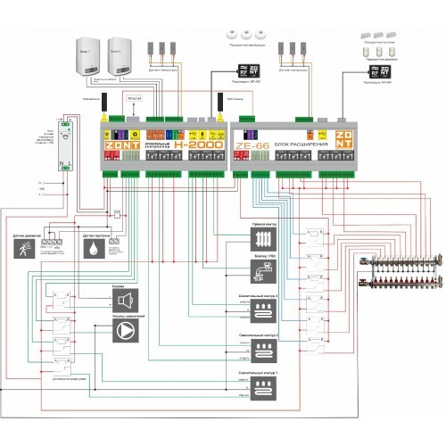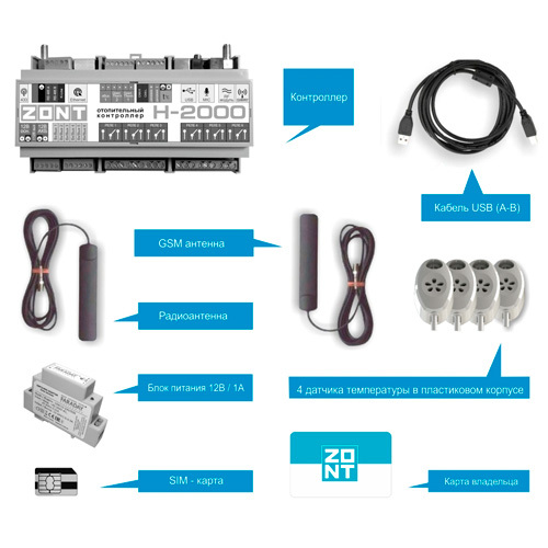 Организовать автоматизированное и качественное дистанционное управление работой котла позволит контроллер ZONT (Зонт) H-2000 Plus (ML00004239). Агрегат способен информировать пользователя с помощью веб-сервиса или мобильного приложения при возникновении аварийных ситуациях. Модель позволяет поддерживать температурные диапазоны каждого контура.