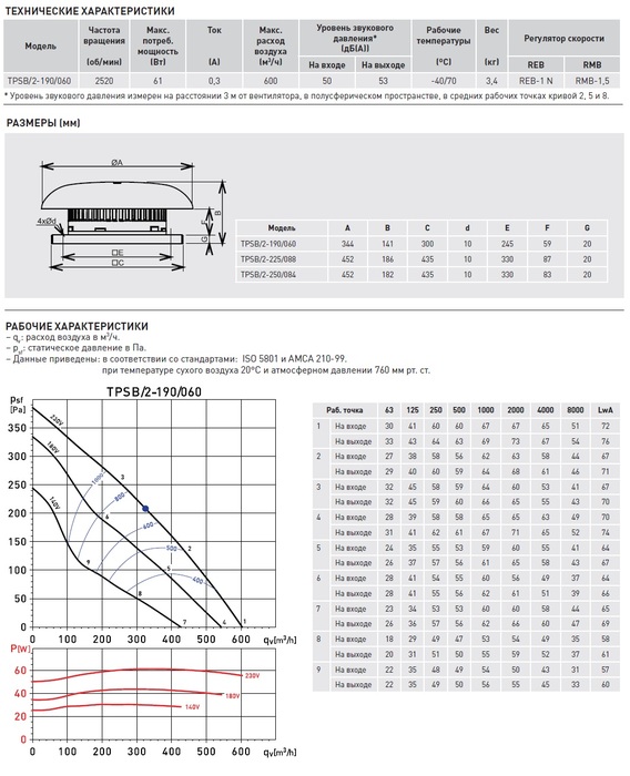• Вентиляторы комплектуются 2-полюсными электродвигателями со встроенной термозащитой