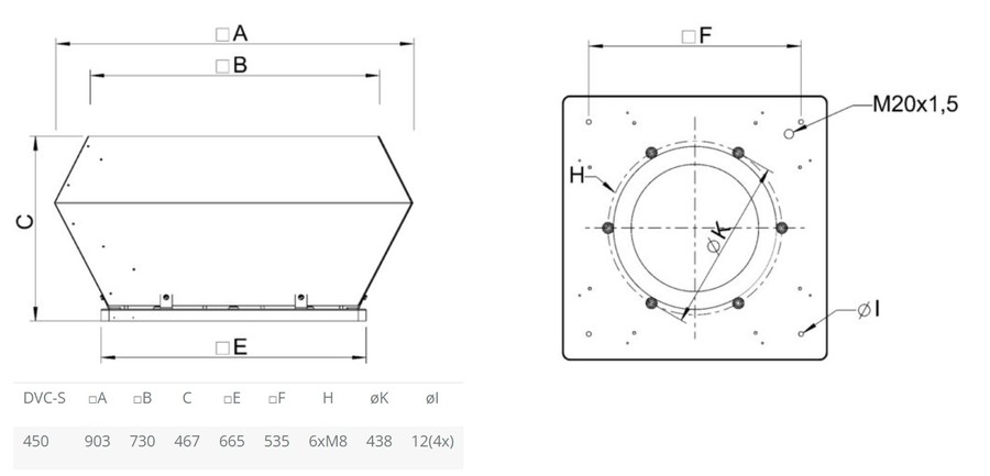 | Присоединительный размер, мм | 535×535 |