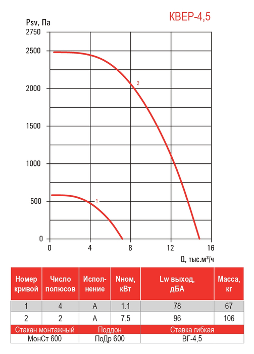 - Вариант исполнения рабочего колеса: А; В.