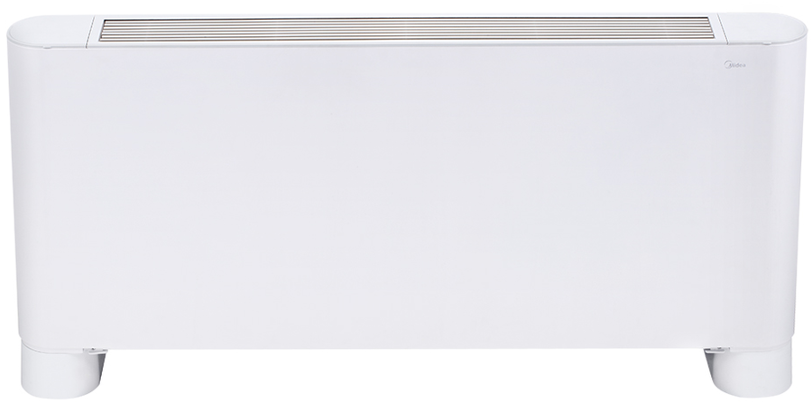 Midea (Мидеа) MKH2-350-R4 – это напольно-потолочный двухтрубный фанкойл, имеющий высокие технические и эксплуатационные характеристики. Он оснащен четырехрядным теплообменником, а фреоном в нем выступает обыкновенная вода. Диаметр входных и выходных патрубков составляет 3/4 дюйма, подключение к трубам слева.