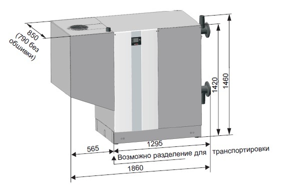 - Возможность перемещения даже в стесненных строительных условиях, так как установку можно разделить на теплообменник и газовоздушную систему.