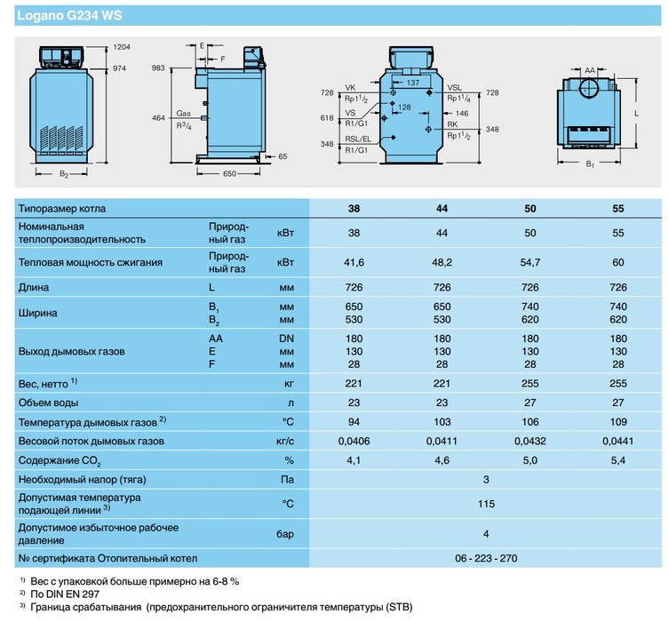 Отопительный низкотемпературный напольный котел серии Logano G234 WS имеет диапазон мощности от 38 до 55 кВт.