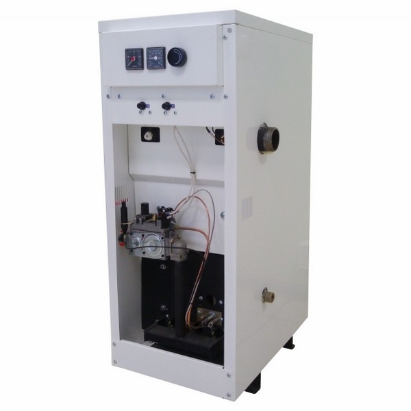 - Оснащен полуавтоматической инжекционной атмосферной газовой горелкой с постоянно горящей пилотной (запальной) горелкой, с пьезорозжигом и термоэлектрическим контролем пламени.