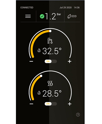 - Возможность управления котлом через интернет (Wi-Fi) при помощи приложения в телефоне для iOS и Android, при помощи беспроводного пульта CONNECT (опция);