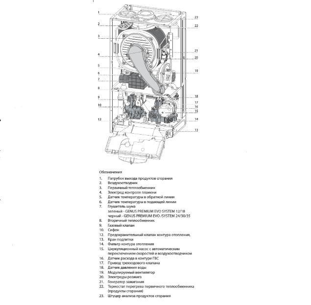 - вентилятор горелки с автоматическим плавным регулированием скорости